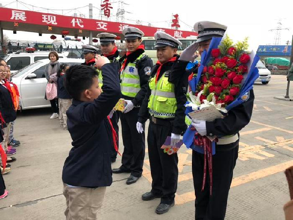西安新闻网讯(记者王超)“无论是刮风下雨,还是烈日炎炎,交警叔叔始终坚守岗位……”在开学之际,来自纺织城小学三年级六班的22名学生和家长代表3月4日上午到交警灞桥大队香王公安检查站对在这里执勤的交警进行了慰问,向无私奉献、踏实敬业的交警致敬并学习安全交通知识。 在现场, 22名同学首先向执勤民警朗诵了自编的赞美交警的诗文。同学们向一线执勤的交警佩戴了红领巾,献上了手捧花、自制的祝福贺卡及锦旗。交警灞桥大队白鹿原分队的民警陈拓在岗亭前带领小朋友们学习了乘车、步行、骑自行车的安全注意事项,尤其是对如何安全上下车进行了重点复习。他还邀请小朋友们开学后在校园里、生活中做一名交通安全宣传员和监督员,宣传交通安全知识,监督家人亲友安全文明参与交通生活,礼让斑马线,安全文明守法出行。 责编:淼淼 |