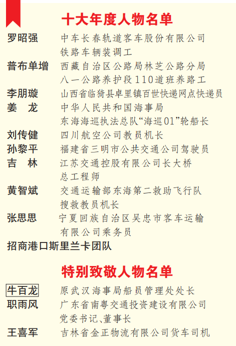 4月29日,交通运输部召开视频报告会,揭晓“2018年感动交通十大年度人物”推选结果,中车长春轨道客车股份有限公司铁路车辆装调工罗昭强等10人获此殊荣,广东省南粤交通投资建设有限公司党委书记、董事长职雨风等3人荣获“2018年感动交通年度特别致敬人物”称号。部党组书记杨传堂出席会议并强调,交通运输系统广大干部职工要更加紧密地团结在以习近平同志为核心的党中央周围,深入学习习近平新时代中国特色社会主义思想,增强“四个意识”,坚定“四个自信”,做到“两个维护”,不断凝聚榜样的力量,大力弘扬新时代交通精神,在交通强国建设中砥砺前行、建功立业。 部长李小鹏出席报告会并为“2018年感动交通年度特别致敬人物”授牌。中华全国总工会副主席魏地春和副部长刘小明为“2018年感动交通十大年度人物”授牌。 杨传堂指出,今年是新中国成立70周年,70年来,我们的国家发生着翻天覆地的变化,一代代交通人艰苦奋斗、自强不息,推动我国交通运输事业发生了历史性变革,为祖国的繁荣昌盛打下了坚实基础。特别是过去一年,交通运输行业涌现出了万米高空临危不惧的英雄机长、精耕细作勇攀技术高峰的高铁工匠、走进中南海建言献策的快递小哥,等等。在他们身上,我们看到了交通人热爱祖国、服务人民的可贵品质,爱岗敬业、诚实守信的优良品德,刻苦钻研、勇于攀登的创新精神,他们是全行业大力培育和践行社会主义核心价值观的生动典范。 杨传堂强调,中国特色社会主义进入新时代,这是个伟大光荣的时代,也是奋斗担当的时代。要深入学习贯彻习近平总书记关于交通运输工作的重要指示精神,深化改革攻坚、奋力开拓创新,共同谱写新时代交通强国建设的崭新篇章。 一要在牢记初心使命中砥砺前行。以榜样的力量为旗帜,对党忠诚、服务人民,把人民群众对美好生活的向往作为奋斗目标,全心全意建设人民满意交通,不辜负党和人民的重托。 二要在推动高质量发展中建功立业。以榜样的力量为鞭策,胸怀大局、立足当下,履职尽责,服务好国家重大战略实施,打好“三大攻坚战”,为振兴实体经济、建设现代化经济体系发挥主力军作用。 三要在建设交通强国中奋力开拓。以感动交通人物为榜样,志存高远、脚踏实地,善于在工作中增长才干,在平凡岗位上创造不平凡的业绩,努力成为担当交通运输改革发展重任的栋梁之才。 四要在弘扬新时代交通精神中引领风尚。继承和发扬以“两路”精神、青藏铁路精神、港珠澳大桥建设者精神、救捞精神、“中国民航英雄机组”精神、邮政精神等为代表的新时代交通精神,在探索实践中不断丰富和发展。 中宣部、中央网信办、中央文明办、中华全国总工会、新华网、中国海员建设工会有关同志,国家铁路局、中国民航局、国家邮政局有关司局,部机关有关司局及在京部属单位负责同志,交通运输行业劳模和先进人物等有关代表在主会场参加会议。各省(区、市)和新疆生产建设兵团交通运输厅(局、委)及京外部属单位设分会场参加会议。 会前,部领导还揭幕并参观了2018年感动交通年度人物事迹展。 责编:淼淼 |